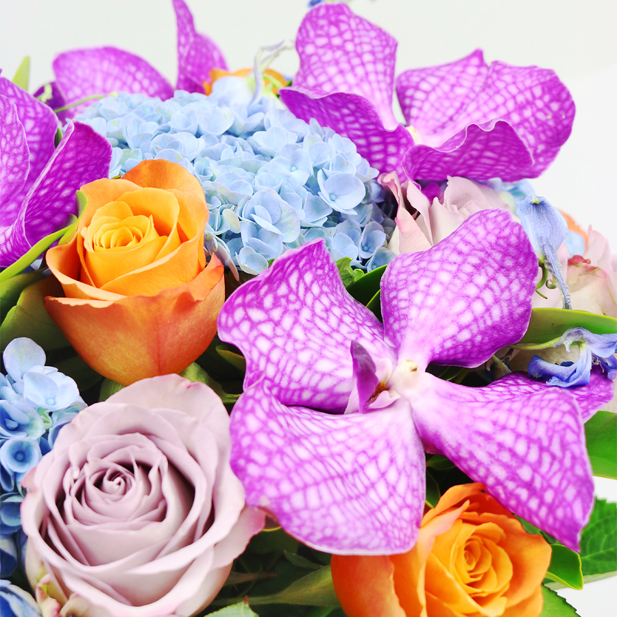 Capture the magic of summer twilight with our Summer Twilight Floral arrangement. This exquisite bouquet intertwines fiery orange and serene blue flowers, embodying the tranquility and beauty of an evening sky.