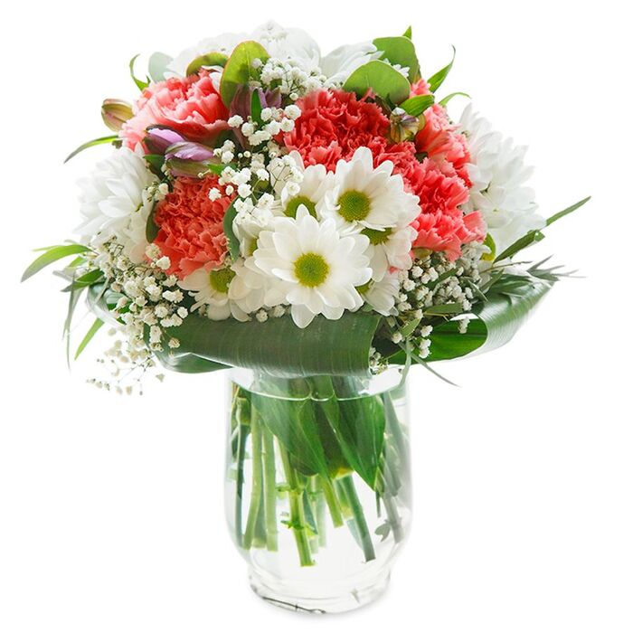 The combination of white chrysanthemums and pink carnations was stunning. Highly recommended.